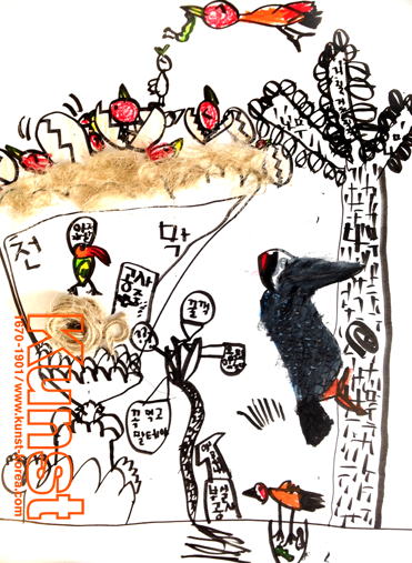 해운대지사의 예준이는 Kunst Kindheit 수업을 하며 재미있는 스토리와 함께 다양한 새드로잉을 해주었습니다. 나무의 딱따구리, 폭신폭신한 지푸라기로 만든 집에서 엄마새를 기다리는 아기새들, 보수공사하느라 안전모자를 쓰고 있는 새까지, 자유로운 드로잉과 재미있는 발상이 눈에 띄는 작품입니다. 해운대지사_박예준(8세)