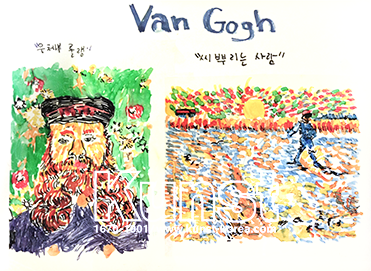 고흐의 삶과 작품세계를 깊이있게 이해하고 작가의 표현기법을 응용해보는 수업을 통해 예준이는 '우체부 룰랭의 초상화'와 '씨 뿌리는 사람'을 그려주었습니다. 원작에서 보여지는 우체부 룰랭의 굽이치는 수염의 선방향을 잘 표현해 주었고, 예준이의 씨 뿌리는 사람에서는 보다 다채로운 색감의 붓터치로 원작보다 역동적이고 따뜻한 느낌으로 고흐의 특징을 잘 나타내 주었습니다. 서초지사_유예준(8세)