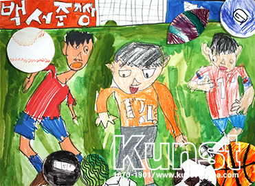 분당지사의 서준이는 KUNST KINDHEIT수업을 하며 축구하는 모습과 다양한 색감, 무늬의 공들을 그려보았습니다. 공을 차기 위해 달려나오고 있는 유니폼을 입은 인물들의 생동감있는 포즈와 표정들이 미소를 자아냅니다. 또한, 축구공 외에 다른 기능의 공들도 실제 이미지를 보고 표현해주어, 서준이의 관찰력도 느낄 수 있는 작품입니다. 분당지사_백서준(7세)