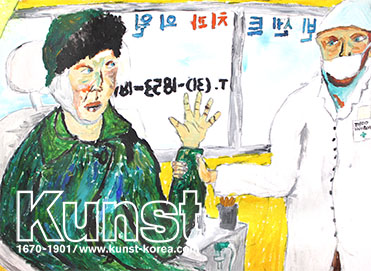 광주지사의 명한이는 고흐의 귀가 잘린 자화상을 보고, 치통이 있어 머리에 붕대를 감고 치과에 간 고흐를 상상했어요. 긴장한 고흐와 손을 꼭 잡아주는 의사, 현실감있는 치과풍경을 잘 표현했습니다. 원작을 그대로 모작하는 것이 아닌, 작품을 통해 자신이 느낀 생각과 감정을 재미있게 반영한 스토리텔링능력이 돋보이는 작품입니다. 광주지사_고명한(12세)