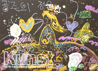 청주상당지사의 가람이는 KUNST KINDER MUSEUM 수업을 하며 구스타프 클림트의 삶과 작품세계를 배워보았습니다. 기하학적인 패턴과 황금빛으로 가득한 작가의 표현기법을 응용하여, 공주의 정원 이라는 이름으로 가람이만의 화려한 정원을 표현했습니다. 자신의 그림풍으로 명화를 재해석한 감각이 돋보이는 작품입니다. 청주상당지사_손가람(10세)
