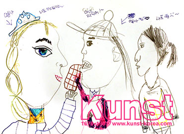 광주지사의 유비는 WALDORF KINDERGARTEN 수업을 하며 인물들의 옆모습을 관찰하여 그려보았습니다. 정면에서 바라보았을 때와 또 다른 측면의 형태를 자세히 표현해보려는 노력이 느껴집니다. 맛있는 과자를 먹고 있는 엘사와 친구들이라는 이야기구성도 해보며 재미있게 표현한 작품입니다. 광주지사_김유비(9세)