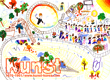 광명지사의 리우는 WALDORF KINDERGARTEN 수업을 하며 놀이공원에 갔던 경험을 표현하였습니다. 롤러코스터를 타기 위해 줄지어 서 있는 사람들의 모습이 실제 놀이공원을 떠오르게 합니다. 마이크를 잡고 방송을 하는 안내원, 철길을 달리는 알록달록한 전동차 등 자신의 머릿속에 있는 이야기를 즐겁게 담아낸 표현력이 돋보이는 리우의 작품입니다. 광명지사_유리우(9세)