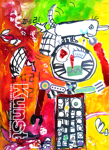 하늘에서 쓰레기들이 쏟아지고 쓰레기 청소 로봇은 우스꽝스러운 얼굴을 하고 바쁘게 청소를 하고 있습니다. 그런 로봇을 놀리듯 로봇의 머리 위에는 가은이가 즐겨보는 디즈니만화 캐릭터인 페리가 살포시 앉아 꼬리를 흔들고 있네요. 모양자의 동그라미, 네모, 세모 등 기초 도형의 형태를 익혀보고, 응용 구성하여 재미있는 이야기로 풀어낸 가은이의 스토리텔링 능력과 칼라감각이 돋보입니다. 서초지사_노가은(5세)