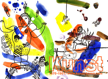 김포지사의 은성이는 KUNST KINDER MUSEUM 수업을 통해 페르낭 레제의 삶과 작품세계를 배워보고, 작가가 즐겨 그렸던 소재와 기법을 응용하여, 서커스를 주제로 표현해 보았습니다. 원색적인 붓 터치 위에 다양한 활동을 하고 있는 캐릭터들의 재미있는 드로잉이 어우러져, 감각적인 화면을 완성해 주었습니다. 김포지사_조은성(13세)
