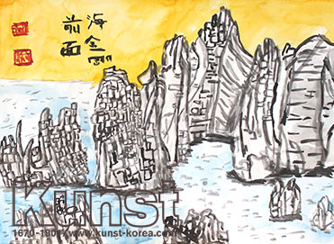 청주흥덕지사의 종원이는 KUNST KINDER MUSEUM 수업을 하며, 서민들의 일상생활을 그린 풍속화로 유명하지만 진경산수화에도 뛰어났던 김홍도에 관하여 깊이 있게 배워보았습니다. 김홍도의 대표작인 금강사군첩-해금강 전면을 모작해보며, 해금강의 웅장한 바위와 잔잔한 바다를 멋지게 표현해 주었습니다. 청주흥덕지사_임종원(11세)
