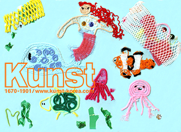 광명지사의 지우는 KUNST FACTORY수업을 통해 다양한 색상의 실을 활용하여 바닷속 생물들을 표현해 주었습니다. 붉은색 곱슬머리의 인어공주 주위로 니모와 고래, 거북이, 문어 친구들이 함께 모여 있어요. 과일 포장지와 셀로판지도 부분적으로 활용하여 더욱 재미를 주는 작품입니다. 광명지사_강지우(10세)