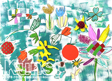 마산회원구지사의 시은이는 KUNST WALDORF KINDERGARTEN 수업을 하며, 다양한 오브제를 활용해 다채로운 꽃들이 피어있는 꽃밭을 표현해 주었습니다. 스펀지를 콩콩 찍어서 표현한 풀밭 위에 찰흙으로 만든 노란 꽃, 자유롭게 드로잉한 후 오브제를 덧붙여 입체감을 준 꽃 등을 구성하여 회화적으로 완성해 주었습니다. 마산회원구지사_이시은(8세)