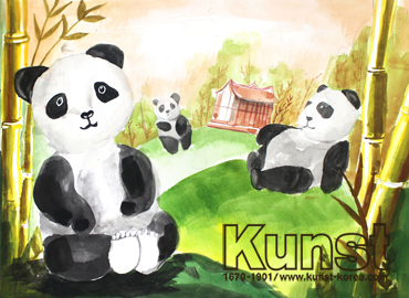 인천남동구지사의 솔이는 KUNST TRAVEL 수업에서 중국의 문화와 역사에 대해 배워본 후 중국을 대표하는 동물인 팬더를 다양하게 묘사해 보았습니다. 팬더가 좋아하는 대나무숲을 배경으로, 앉아서 정면을 바라보는 팬더와 뒤로 기대어있는 팬더의 옆 모습, 멀리 서 있는 팬더 등 다양한 동작의 팬더를 그려 넣어 다채롭게 완성한 작품입니다. 인천남동구지사_전솔(11세)