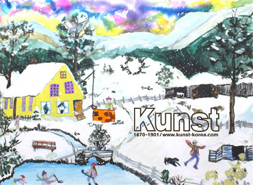 마산회원구지사의 지윤이는 KUNST KINDER MUSEUM 수업에서 안나 메리 로버트슨 모지스 할머니의 삶과 작품을 배워보고 눈이 쌓인 마을의 풍경을 모지스할머니 풍으로 재창조해 본 작품입니다. 마산회원구지사_전지윤(11세)