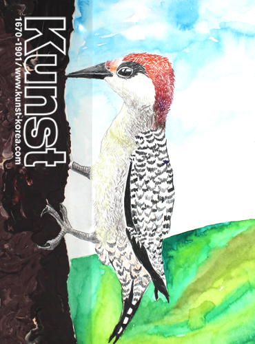 대전중구지사의 원기는 KUNST NATURAL & SCIENCE 수업에서 조류의 성장 과정과 생태를 배워보는 시간이었습니다. 나무줄기에 수직으로 붙어 먹이를 찾는 딱따구리의 특징을 자세히 표현하였습니다. 붉은색의 깃털을 가진 오색딱따구리의 강력한 발톱과 나무의 질감, 딱따구리의 몸을 감싸는 털 하나하나 놓치지 않고 세밀하게 표현한 매우 훌륭한 작품입니다. 대전중구지사_민원기(9세)