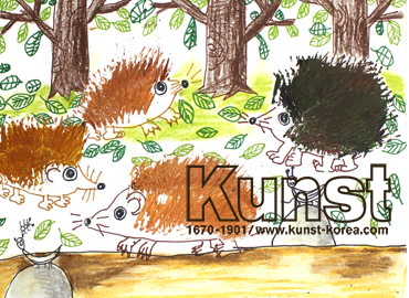 청주청원지사의 해린이는 WALDORF KINDERGARTEN 수업에서 다양한 미술 재료를 탐색하며 재료별 특징을 알아보는 시간이었습니다. 얇은 펜촉을 가진 사인펜은 섬세하게 그려지는 특징으로 선명한 그리기가 가능하며 쓱쓱 그려지고 색이 진하며 종이에 접착이 잘 되는 크레파스는 넓은 면적을 칠하기 용이하며 사용감이 편리하다는 것을 직접 체험해보았습니다. 물감에 물을 적셔 붓으로 칠하지 않고 긁어 표현한 물감 표현이 매우 인상적인 작품입니다. 물감의 특징을 잘 살려 고슴도치를 표현한 해린이만의 표현법이 매우 훌륭합니다. 청원지사_정해린(8세)
