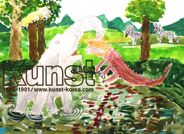 양천지사의 수호는 WALDORF KINDERGARTEN 수업에서 동물을 자세히 관찰하고 표현해 보는 시간이었습니다. 잘 보존된 아프리카 초원의 동물들을 배워보고 각 동물들이 가진 특징을 살펴보며 수호만의 스토리로 멋지게 표현하였습니다. 코끼리와 악어의 치열한 사투를 지켜보는 악어와 치타의 표정과 디테일이 매우 놀라운 작품입니다. 양천지사_차수호(9세)