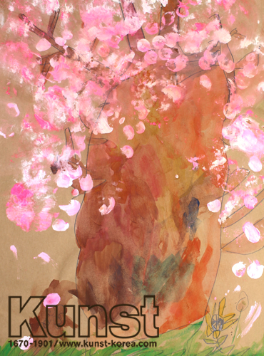 강서지사의 하린는 KUNST KINDHEIT 수업에서 물감 찍기를 이용하여 벚꽃을 입체적으로 표현해 보았습니다. 굵은 줄기에서 길게 뻗은 가지들마다 만발한 벚꽃을 생동감 있게 그려주었습니다. 분홍색과 하얀색을 이용하여 연분홍빛의 눈송이들이 팝콘 터지듯 멋지게 표현해 주었습니다. 강서지사_김하린(6세)
