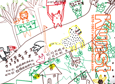 청주청원지사의 민채는 Think&Creative 를 통해 토끼와 거북이 경주이야기를 새롭게 상상해보고 그림으로 표현해 보았어요. 다양한 동물들이 본인만의 발자국을 내며 달리기를 하고, 친구들은 플랜카드를 들고 응원을 하고 있어요. 사인펜의 선적인 효과를 잘 살려 재미있게 이야기를 풀어낸 작품입니다. 청주청원지사_김민채(9세)