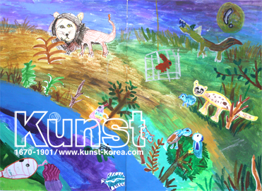 화가의 일대기와 표현 기법을 배워보는 시간을 통해 완성한 작품입니다. 앙리 루소의 그림은 원색적인 색채와 선명한 그림, 이국적인 분위기의 정글 그림으로 유명합니다. 서은이도 앙리 루소의 화풍을 응용하여 자유로운 붓터치감과 조화로운 색감의 배경 위에 다양한 동물과 식물들을 그리고 오려 붙여 본인만의 숲 속을 신비스럽게 표현한 감각적인 작품입니다. 목동양천지사_조서은(8세)