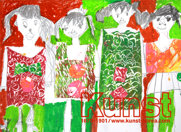 분당판교지사의 예나는 Kunst Kindheit 수업을 통해 재료의 다양한 특성을 느끼고, 기법을 응용해보며 표현력을 넓혀가는 시간을 가졌습니다. 물감 위에 뾰족한 이쑤시개와 손 등으로 다양한 텍스처를 내어 만든 종이를 오려 붙여 멋진 옷을 완성했어요. 익살스러운 표정이 재미있는 친구들의 얼굴을 함께 드로잉하여 완성한 응용력이 눈에 띕니다. 분당판교지사_정예나(6세)