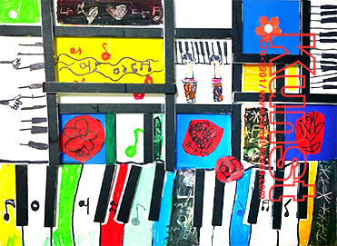 원색적인 색감과 수평선, 수직선으로 자연환경, 건축물, 일상생활 등의 작품세계를 표현하였던 몬드리안에 대해 공부하고 나경이만의 그림으로 응용해 보았습니다. 평면적, 입체적인 선들이 만나 다양한 면을 이루고, 건반과 음악의 리듬감을 느낄 수 있는 자유로운 드로잉이 감각적인 작품입니다. 목동양천지사_홍나경(8세)