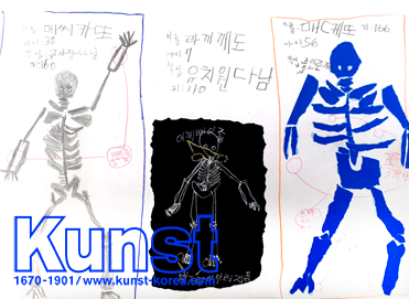 광주지사의 유완이는 Kunst Kindheit를 통해, 인체의 골격,비례에 대해서 배운 후, 연필, 펜, 색종이로 재미있게 표현하였습니다. 재치있고, 익살맞은 골격의 명칭과 인물소개를 통해 섬세하고 유완이만의 재기발랄한 감성을 엿볼 수 있는 멋진 작품입니다. 광주지사_최유완(8세)