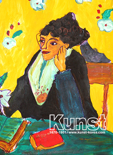고갱이 고흐에게 선물한 [레미제라블의 자화상]의 배경꽃 그림을 모작, 응용하여 스케치북의 한 화면에 담아, 자신의 수채화 느낌과 드로잉으로 재탄생했습니다. 실제 얼굴 이목구비를 자세히 관찰하여 여인의 이목구비도 아주 잘 그려주었습니다. 지누부인과 책에 얽힌 고흐의 일화도 이야기해보며 고흐의 감정을 느껴보고, 자신의 느낌으로 재구성한 해원이의 감각을 느낄 수 있습니다. 광주지사_정해원(8세)