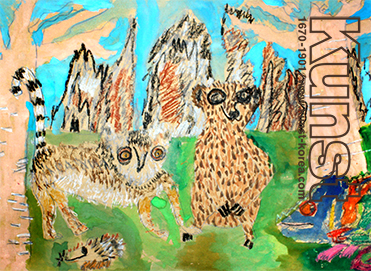 지호는 이미지여행을 통해 마다가스타르의 기후와 문화, 유명한 동식물들을 배워보며, 여우 원숭이와 자연환경을 그림으로 섬세하게 표현하였습니다. 여우원숭이의 털의 특징과 무늬를 관찰하여 그려주었고, 소포지 위에 스미듯이 표현한 물감의 배경채색이 주제물을 부각시키는 작품입니다. 광주지사_윤지호(10세)