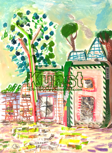 과자상자, 사탕포장비닐, 은박지, 스티로폼 등 주위에서 흔히 볼 수 있는 재활용품을 활용하여 수빈이만의 새로운 작품으로 재탄생시켰습니다. 수빈이는 엄지 산타할아버지가 살 수 있는 집과 집 앞에는 햇빛에 반짝이는 아름다운 호숫가와 하늘을 표현했습니다. 반짝이는 물결은 잘게 자른 비닐과 물감을 섞어 구성하였고, 에메랄드빛의 하늘과 구름은 모델링 페이스트와 함께 그렸습니다. 서초지사_진수빈(6세)