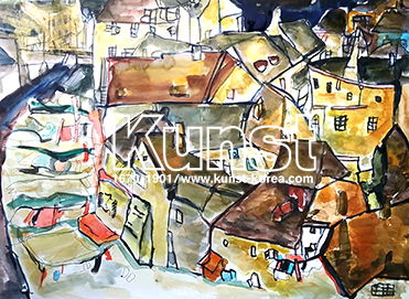 목동양천지사의 승빈이는 Kinder Museum수업을 하며 오스트리아의 표현주의 화가인 에곤쉴레의 삶과 작품세계를 배우며 크루마우의 풍경을 모작해 보았습니다. 연필스케치와 수채화로 원작보다 투명한 느낌으로 마을을 표현하였으며, 건물들의 자유로운 선과 형태를 잘 살려주었습니다. 목동양천지사_이승빈(10세)