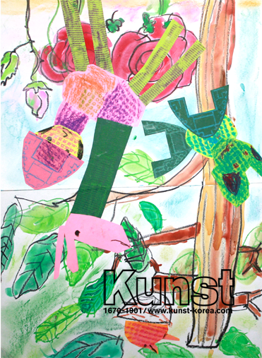 일산지사의 진우는 waldorf kindergarten 수업을 통해 프로타쥬 기법을 배워보고 응용해보는 시간을 가졌습니다. 골판지, 레고 등 울퉁불퉁 모양이 있는 재료들을 먼저 손으로 만져보고 느낀 후, 그 위에 종이를 대고 쓱쓱 칠해주니 재미있는 모양들이 생겼습니다. 신비의 동물을 탄 사람의 모습과 자유로운 풍경을 재미있게 표현한 작품입니다. 일산지사_ 박진우(7세)