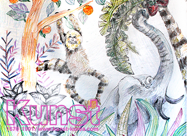 주현이는 앙리루소의 삶과 작품세계를 배워보며, 화가의 감성과 주제를 반영하여 이국적인 정글 그림을 그려주었습니다. 다양한 종류의 식물들과 원숭이, 코끼리를 색연필로 세밀하게 표현하여, 원색적인 색채가 강렬한 화가의 채색과는 또 다른 느낌을 자아냅니다. 우거진 정글 속에서 서로 어우러지는 밝은 채색의 주제들이 주현이만의 감성으로 표현된 응용력이 돋보이는 작품입니다. 광주지사_박주현(15세)