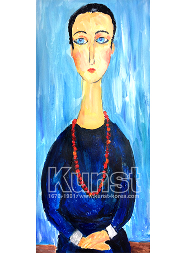 광주지사의 승현이는 모딜리아니의 삶과 작품을 알아보고, 모작을 해보며 작가의 표현기법을 배워보는 시간을 가졌습니다. 모딜리아니 작품의 특징인 긴 목과 얼굴의 형태, 중첩되어 쌓아올린 유화느낌의 터치들을 잘 표현했습니다. 정면을 응시하고 있는 투명한 파란 눈과 짧은 머리, 다소곳하게 앉아있는 인물의 모습이 매력적인 작품입니다. 광주지사_김승현(15세)