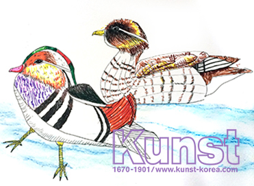 경남김해지사의 남령이는 NATURAL&SCIENCE 수업을 하며 평소에 즐겨보았던 조류도감에 나오는 다양한 종류의 새들에 대해 함께 이야기를 나누어보고, 한 쌍의 원앙을 그려보았습니다. 원앙이 가진 특징적인 형태를 잘 살려 그려주었으며, 화려한 깃털의 무늬와 색감을 싸인펜으로 섬세하게 나타낸 표현력이 돋보입니다. 경남김해지사_임남령(11세)