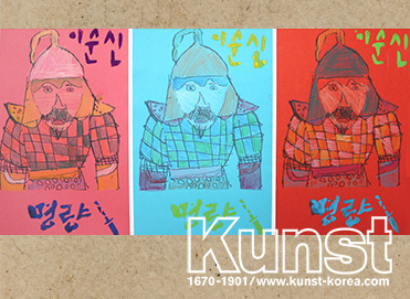 광주지사의 환의는 KUNST KINDER MUSEUM를 통해 앤디워홀의 삶과 작품세계를 배워보았습니다. 팝아트의 대표적인 작가로, 마릴린 먼로와 같은 유명인사들을 캔버스에 반복적으로 표현한 앤디워홀을 따라, 환의는 영화 명량으로도 제작된 이순신 장군을 색지 위에 반복해서 표현하고, 다양한 색을 입혀주어 자신의 그림으로 멋지게 응용했습니다. 광주지사_최환의(8세)