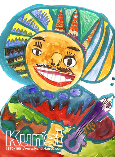 영등포지사의 호진이는 KUNST KINDHEIT 수업을 하며 솜브레로를 쓰고 우크렐라를 연주하고 있는 멕시코인을 그려주었어요. 인물의 뚜렷한 이목구비 느낌을 잘 살려 표현하였고, 색연필과 물감을 이용한 다채로운 패턴이 멕시코인의 화려함을 더욱 부각시켜주는 작품입니다. 영등포_정호진(7세)