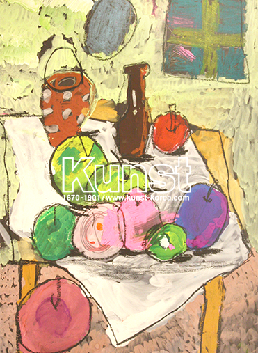 광주지사의 유비는 KUNST KINDER MUSEUM 수업을 하며 폴 세잔의 삶과 작품세계를 함께 배워보았습니다. 과일과 그릇 등을 단순화한 정물화로 많이 그렸던 작가를 따라, 유비도 물체의 기본 형태를 생각해보며, 책상 위에 멋지게 구도를 잡아보았습니다. 천 위에 올려져 있는 정물 뿐 아니라, 무게감있는 붓터치의 배경에서 작가의 감성을 잘 반영한 작품입니다. 광주지사_김유비(9세)