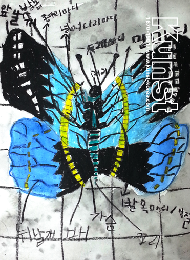 태환이는 나비넥타이를 그릴 때처럼 단순화된 나비를 그리는 것이 아닌, 나비의 구성요소와 생김새에 대해 자세히 관찰하고 표현했습니다. 깃털같은 나비에게도 여러 마디가 있고, 발톱이 있다는 것을 학습함으로써 평소에 과학을 좋아하는 태환이는 나비를 과학과 연관해 배우고 태환이가 좋아하는 과학 등 다른 영역과도 친해지길 기대합니다. 전주 덕진,남원지사_김태환(9세)