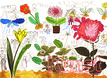 영등포지사의 유진이는 KUNST KINDHEIT 수업을 하며 다양한 꽃들을 관찰하여 표현하였습니다. 실제 꽃 이미지를 오려 붙여서, 이어 그려보기도 하고 자신의 이름을 딴 유진이꽃 상상 속의 괴물꽃도 함께 드로잉하였습니다. 각 꽃이 가진 특징들을 잘 살려 표현했으며, 꽃밭에서 펼쳐지는 재미있는 이야기들을 자신있게 표현한 감각이 돋보이는 작품입니다. 영등포지사_도유진(8세)