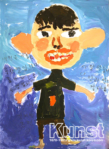 용인수지지사의 수겸이는 WALDORF KINDERGARTEN 수업을 하며, 친구 한결이를 표현했습니다. 한결이가 좋아하는 운동은 수영이며, 키는 수겸이보다 작지만 큰 편이며, 인라인 스케이트를 잘 탄다고 소개해 주었습니다. 친구의 얼굴을 떠올리며, 정면을 바라보고 있는 한결이의 모습을 글과 함께 자유롭게 표현한 작품입니다. 용인수지지사_김수겸(9세)