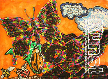 분당지사의 은정이는 KUNST FACTORY 수업을 하며 스크래치기법으로 나비와 새, 곤충들이 함께 어우러지는 생태계를 표현하였습니다. 주황색 하늘 아래 스크래치 종이로 섬세하게 묘사한 알록달록한 나비와 벌레를 잡아먹고 있는 새가 다채로운 구성을 보여줍니다. 기법을 응용한 표현력과 묘사력이 돋보이는 작품입니다. 분당지사_천은정(10세)