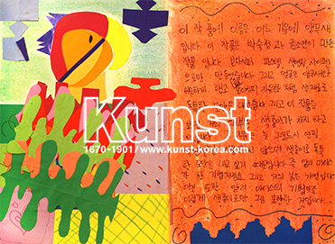 용인수지지사의 소연이는 KUNST KINDER MUSEUM 수업을 하며, 앙리 마티스의 삶과 작품세계를 배워보았습니다. 색종이를 활용하여 원색적으로 표현한 앵무새와 작품의 취지를 설명한 글이 조화를 이루며 감각적으로 완성하였습니다. 용인수지지사_권소연(10세)