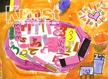 용인수지지사의 예빈이는 WALDORF KINDERGARTEN 수업을 하며, 숫자 볶음밥을 만들어 주었습니다. 다양한 형태, 색의 오브제들을 재미있게 표현한 작품으로 분홍빛 그릇 한가득 자유로움이 넘칩니다. 용인수지지사_김예빈(8세)