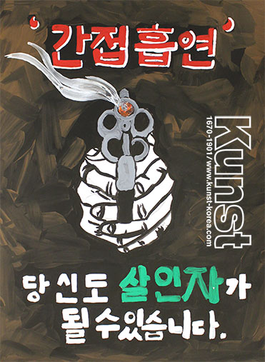 청주흥덕지사의 채원이는 EVERYDAY & EVERYART 수업을 하며, 금연 포스터를 그려주었습니다. 방아쇠를 당기면 바로 총알이 날아올 것 같은 기관총의 강렬한 이미지와 간접 흡연의 심각성을 알리는 문구 등 이미지와 글을 통한 메시지 전달이 강하게 느껴지는 채원이의 포스터입니다. 청주흥덕지사_이채원(12세)