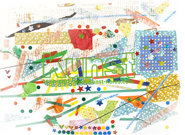 대전유성구지사의 서진이는 KUNST KINDHEIT 수업을 하며, 마스킹 테이프와 스티커, 색종이 등의 다양한 오브제를 활용하여, 음악의 느낌을 자유롭게 표현해 보았습니다. 음악의 리듬감을 형상화한 이미지들이 조화를 이루며, 리드미컬한 화면을 연출해 주었습니다. 대전유성구지사_이서진(7세)