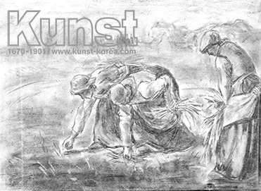 대전서구지사의 민정이는 KUNST KINDER MUSEUM 수업을 하며 밀레의 대표작인 [이삭 줍는 여인들,1857] 을 모작해 주었습니다. 민정이는 황금빛 톤이 주를 이루는 원작과는 달리 추수가 끝난 들판에서 이삭을 줍고 있는 여인들의 모습을 흑백의 모노톤으로 표현하였습니다. 인물들의 부드럽고 섬세한 음영감 표현과 자연스러운 원근감 표현이 높은 완성도를 보여주는 작품입니다. 대전서구지사_정민정(16세)