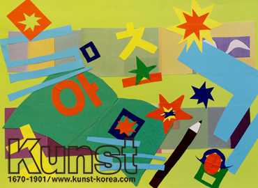 경남김해지사의 정모는 KINDER MUSEUM 수업을 하며 앙리 마티스의 작품세계를 배워보았습니다. 한글과 도형의 형태를 단순화한 색종이 조각을 활용하여 화면을 조화롭게 구성해 주었습니다. 양각표현, 겹침 표현, 다채로운 색 표현이 조화롭게 어우러진 작품입니다. 경남김해지사_김정모(9세)