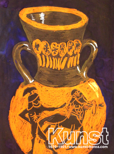 쿤스트 대전중구지사의 현승이는 KUNST TRAVEL을 통해 서구 문명의 대표적인 그리스 고대유물을 그려보며 문화와 예술에 가까워지는 시간을 가졌습니다. 그리스 항아리 암포라의 문양과 특징을 디테일하게 표현하고 배경에 대비되는 색채를 사용하여 눈에 띄는 작품을 완성해주었습니다. 대전중구지사_김현승(9세)