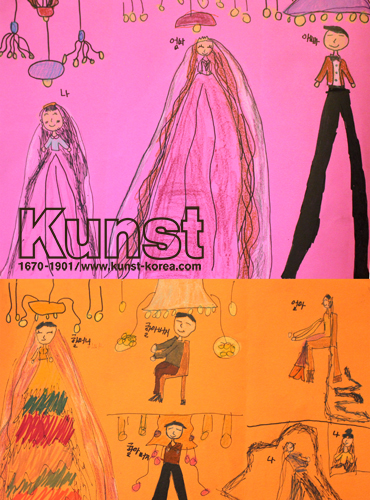 강남지사의 채윤이는 EVERYDAY & EVERYART 수업을 하며 색지 위에 가족을 그려보았습니다. 모든 가족 구성원을 왕자님과 공주님처럼 멋지게 표현하였고 특히, 인물의 다리를 길게 표현한 점이 특징적입니다. 각 인물의 머리 위에는 각기 다른 모양의 조명을 그려 넣어 개성있는 작품을 완성해 주었습니다. 강남지사_이채윤(8세)