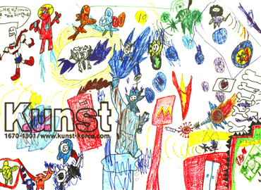 대전유성구지사의 동훈이는 KUNST TRAVEL 수업에서 미국에 대해 배워보고 작품으로 표현해보았습니다. 미국의 대표적인 패스트푸드인 맥도날드와 뉴욕의 리버티섬에 있는 자유의 여신상, 그리고 마블 영화의 캐릭터들 까지. 미국의 여러 상징을 만화적인 느낌으로 재해석하여 오밀조밀하게 잘 구성한 작품입니다. 대전유성구지사_유동훈(10세)
