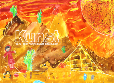 충주지사의 은서는 KUNST FACTORY 수업을 통해 한색과 난색에 대해 알아보고 따뜻한 느낌으로 가득한 태양 나라를 그려보았습니다. 크레파스와 물감이 서로 섞이지 않는 성질을 이용하여 이글거리는 태양을 오른쪽에 크게 그려준 후, 사막을 나타내는 다른 아기자기한 드로잉을 넣어 사막의 뜨거운 느낌을 잘 나타낸 작품입니다. 충주지사_이은서(9세)
