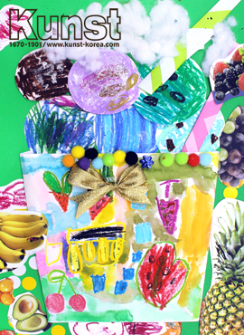 인천남동구지사의 제이든은 KUNST KINDHEIT 수업에서 알록달록 과일 아이스크림을 만들어보는 시간을 가졌습니다. 콜라주 기법을 활용하여 다채롭게 채색한 종이와 다양한 과일 사진을 오려 붙이고, 색종이와 촉감있는 재료로 아이스크림 컵을 만들어 제이든만의 감각적인 아이스크림을 완성해주었습니다. 인천남동구지사_제이든(7세)