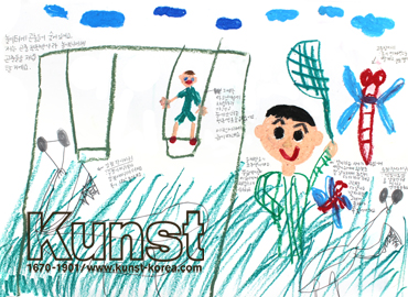 대구달서구지사의 동규는 WALDORF KINDERGARTEN 수업에서 즐거운 놀이터에서 일어나는 일을 구체적인 드로잉으로 표현해보는 시간을 가져보았습니다. 곤충채집을 좋아하는 동규가 가는 놀이터에는 몸짓이 커다란 왕사마귀도 있고 몸이 전체적으로 빨간 고추잠자리도 있어요. 특징이 살아있는 드로잉과 함께 자세한 설명을 덧붙여 곤충을 좋아하는 마음이 돋보이는 작품입니다. 대구달서구지사_허동규(9세)
